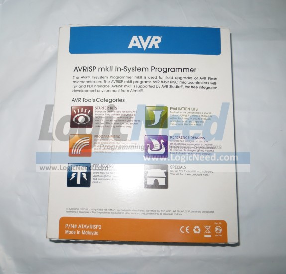 Description: AVR® In-System Programmer mkII is used for field upgrades of AVR Flash microcontrollers. The AVRISP mkII combined with AVR Studio® can program tiny AVR and mega AVR devices using the ISP Interface, tiny AVR devices with TPI interface, and AVR XMEGA devices using the PDI Interface.