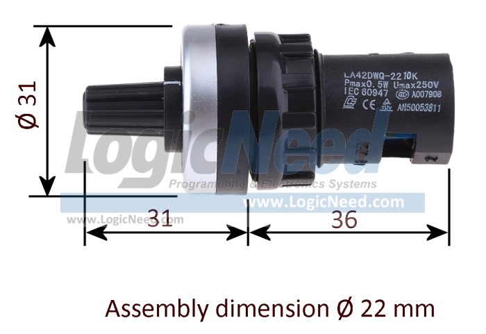 Description:  Plastic 10 kΩ, 22 mm Potentiometer, single turn